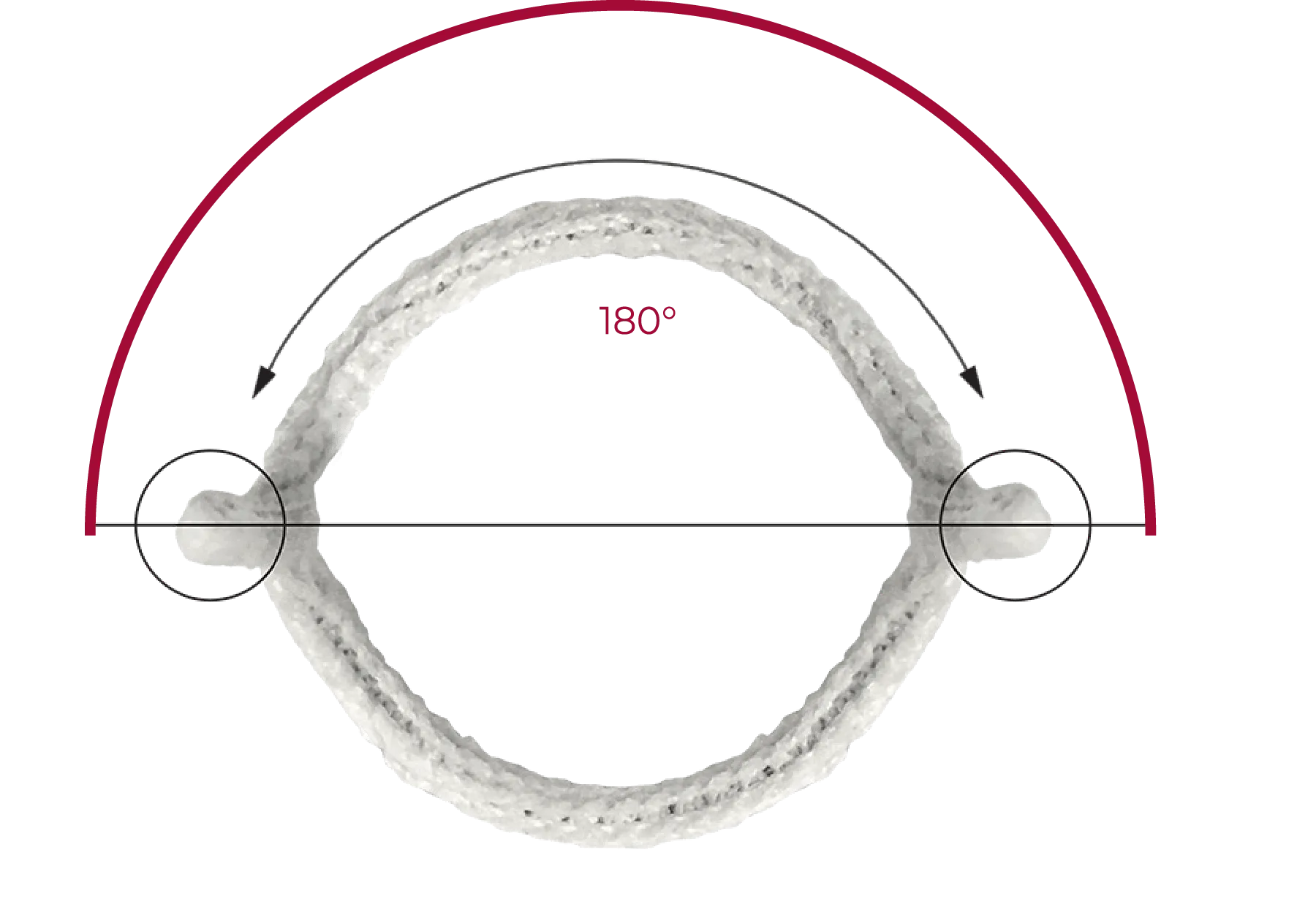 Symmetric repair of bicuspid aortic valves has been shown to be the most durable reconstruction.1 The HAART 200 devices are designed to create a symmetric repair with the commissures positioned at 180°. The bicuspid annuloplasty devices are sized to maximize the non-fused cusp to comprise half of the valve. The other half of the valve is constructed from the two fused cusps.