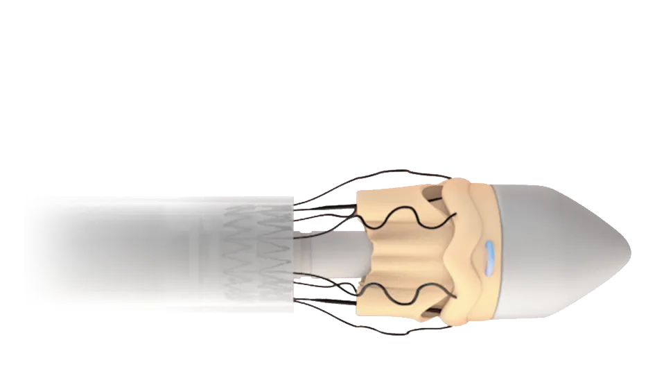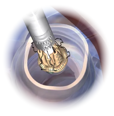 The collapsible profile of the valve and the small diameter of the Delivery System allow the surgeon full visibility of the annulus and of the anatomical structures during implantation and deployment for great confidence and fast, precise positioning at the implantation site.2,8