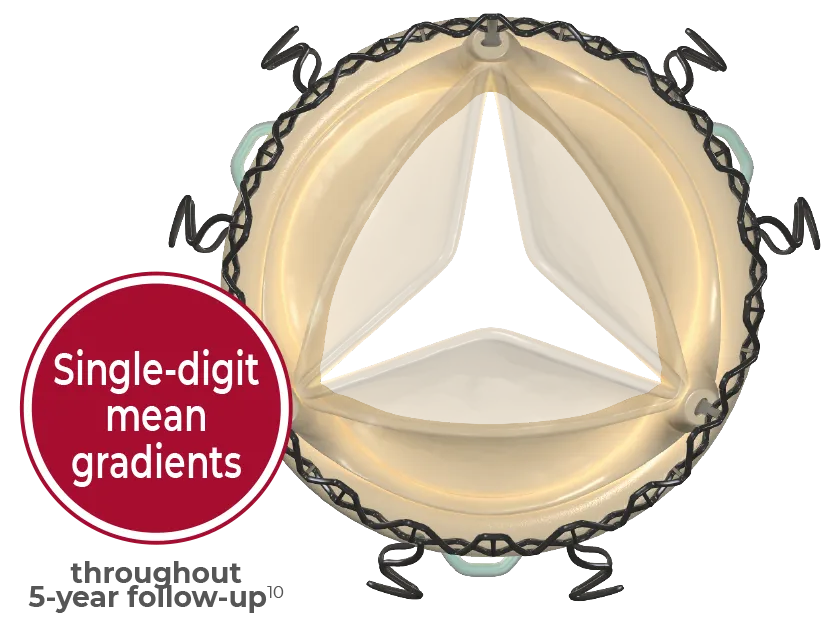 The Nitinol stent allows Perceval Plus to follow the physiological movement of the aortic root during the cardiac cycle, mimicking the native valve.10,11