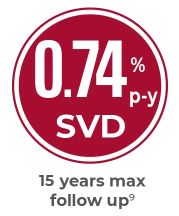 Perceval Plus is based on the trusted Perceval Platform, that has shown a linearized rate of SVD of 0.74% per patient-years with a maximum follow-up of 15 years.9