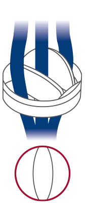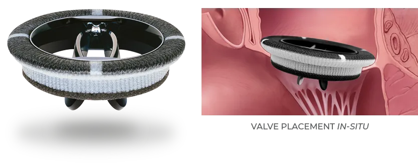 Curved leaflets, aerofoil housing profile, optimized leaflets travel arc and opening angle favor a laminar blood flow which reduces shear stress and hemolysis.7
